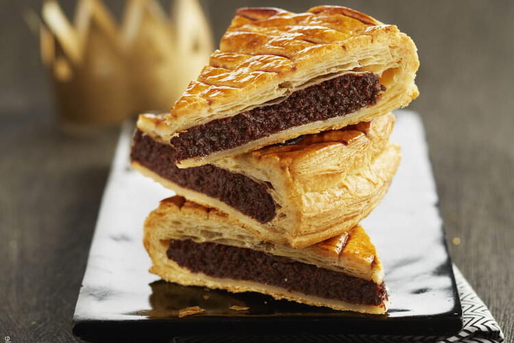 The kings' cake with frangipane and chocolate is a delicious variation of the classic recipe. It combines the crispiness of puff pastry with the softness of frangipane, complemented by the indulgent flavors of chocolate. Easy to prepare, this treat will delight both children and adults during Epiphany or for a festive snack.