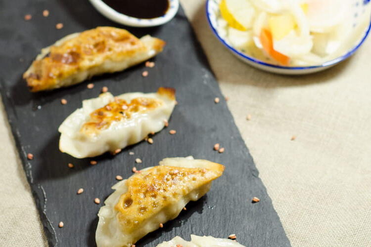 A tender and light filling for these half-crispy, half-steamed dumplings...