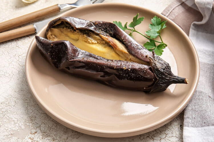 Place the eggplants in a microwave-safe dish and cook for 4 minutes.