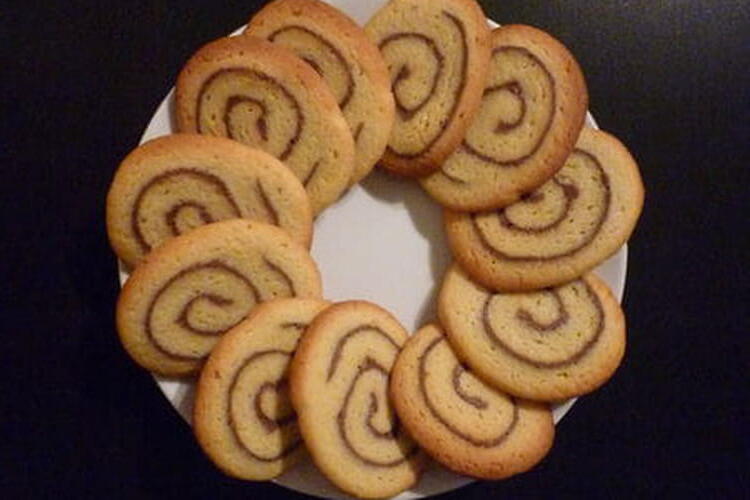 Roll the dough and wrap it in plastic wrap. Place it back in the refrigerator for 30 minutes before cutting the rolls into slices about 1/2 cm thick. To get nice slices and especially to keep the central pattern intact, use dental floss or nylon thread, definitely not a knife!