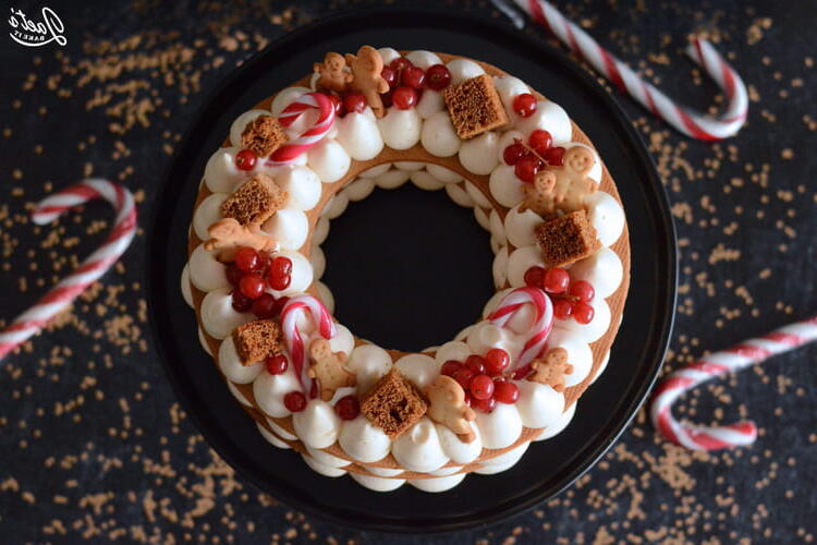 To finish ASSEMBLY, place the first circle of sweet pastry on a plate. Pipe the cream over the entire surface, and garnish with currants. Place the second circle, pipe more cream, then add currants. Place the third circle, pipe the remaining cream on top, and decorate your crown with pieces of gingerbread, cookies, candy canes, and a few clusters of currants. Keep refrigerated.