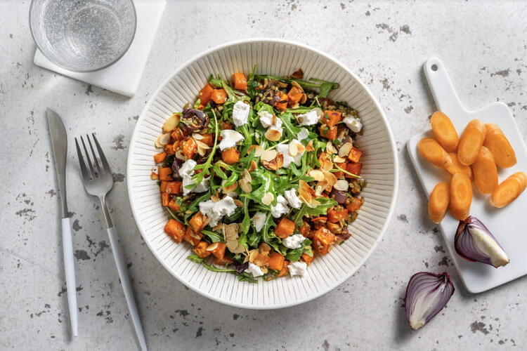 To finish, cut the butter into pieces and mix it with the parmesan. Add the flour and almond powder. Continue mixing with your fingertips until you obtain a crumbly dough. Place the crumble dough on a baking sheet. Bake for 10 to 15 minutes at 240°. At the time of serving, sprinkle the panna cotta with crumble and a few cubes of feta.