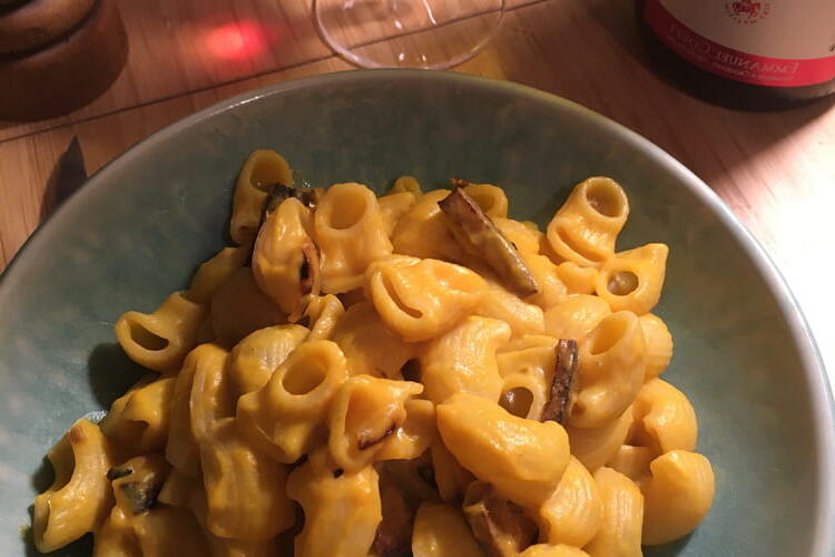 To finish, put everything in a large pan to complete the cooking: tofu, onions, butternut cream, pasta, and the remaining cooking water. Sauté for 2 minutes and serve!