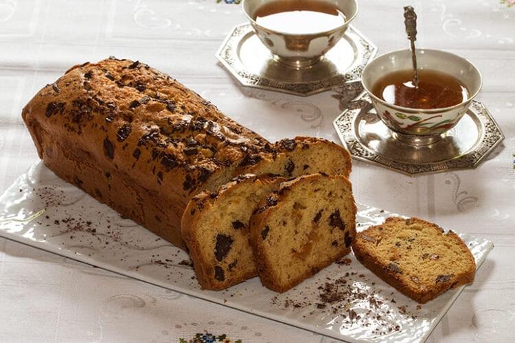 Recipe for Cake with chocolate chips, vanilla, and candied oranges.