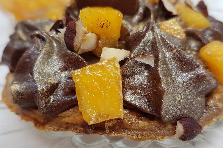 For an easy-to-make, festive, and very indulgent dessert, this tartlet is perfect! A puff pastry, a chocolate ganache, and cubed persimmons are what make this dessert ultra indulgent.