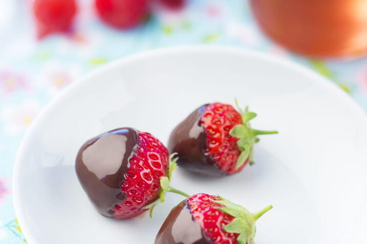 A recipe for chocolate-covered strawberries. Photo credit: [Brand].