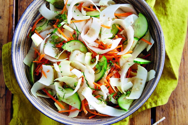 Mix all these ingredients together in a bowl. Add the oil, the juice from the second half of the lime, and pepper. Gently mix and serve in nice bowls.