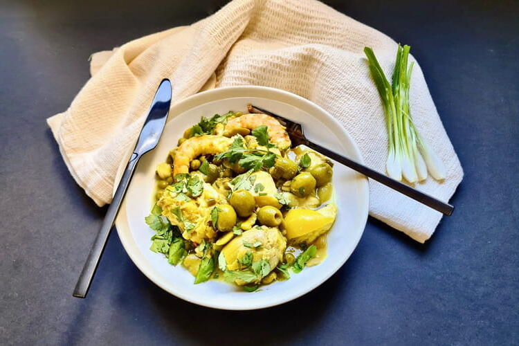Preheat the oven to 190°C. Cut 2 sheets of parchment paper and place the fish on them. Sprinkle with chopped basil and cover with the vegetable mixture. Seal the packets.