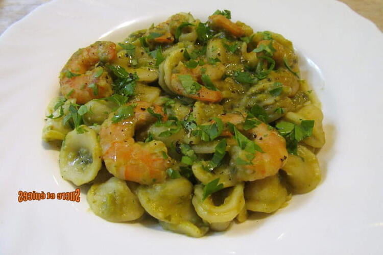 Heat the oil in a skillet and sauté the garlic and onion for a few minutes. Add the tomato purée, zucchini, salt, pepper, and chili. Let simmer for about 10 minutes.