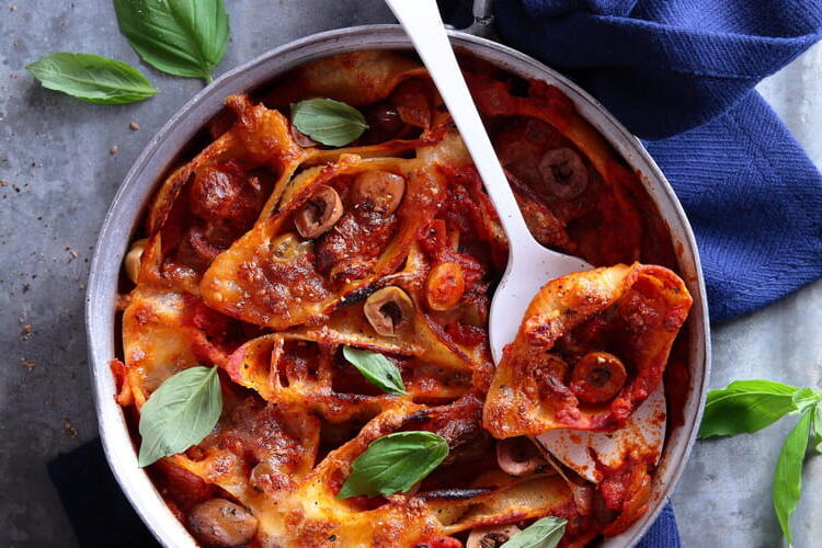 Recipe for Conchiglioni Gratin with Tomato Sauce and Olives in the Provençal Style