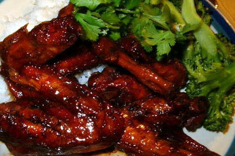 I suggest a variation with an oven finish: Cook everything gently in the pot for 15 minutes with all the ingredients. Then place the wings in an oven-safe dish. Pour a few ladles of the marinade over the chicken wings. And put in the oven at 220°C or gas mark 7. Remove when golden brown.