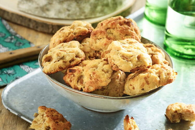 Recipe for Cookies with cheese, caramelized onions, and seeds.