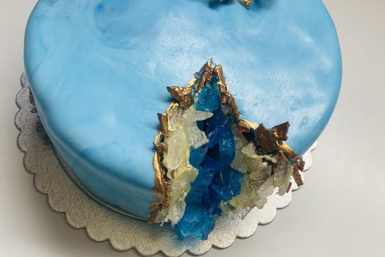 Pour your batter onto a sheet of parchment paper in your baking tray. Bake for about 15 minutes, depending on your oven. The top of the cake should be soft to the touch. Turn out your cake by flipping it onto a damp cloth.