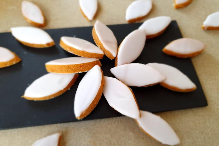 For the frosting, the general rule is 1 volume of egg white for 5 volumes of powdered sugar. Gradually add the powdered sugar to your egg white until you reach the desired consistency, not too runny. And don't forget the bitter almond flavor if you like it. Let it dry for at least 4 hours.