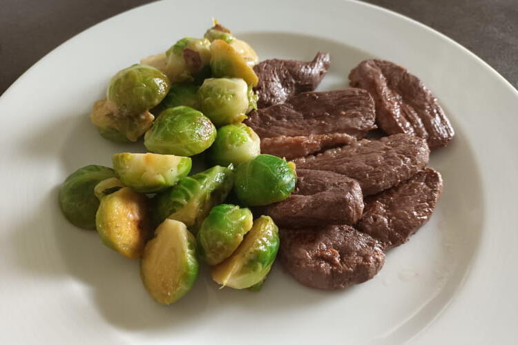 Duck breast with Italian Brussels sprouts, a delightful way to enjoy Brussels sprouts.
