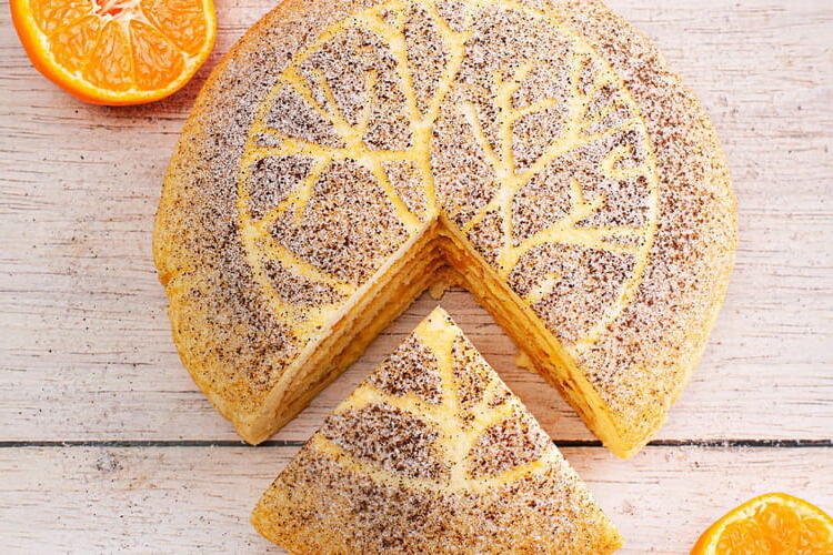 Melt 30 g of butter. Pour in the mixture and cook gently over very low heat for 15 minutes. When the bottom is golden, it’s okay if the top is not cooked. Use two spatulas to cut the pancake into 4. Carefully flip each quarter. Continue cooking on this side.