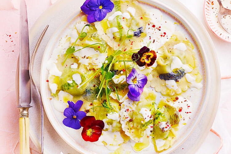 A delicious recipe for flower-shaped ravioli stuffed with cheese. Recipe and styling: Annelyse Chardon Photo credit: Julie Mechali