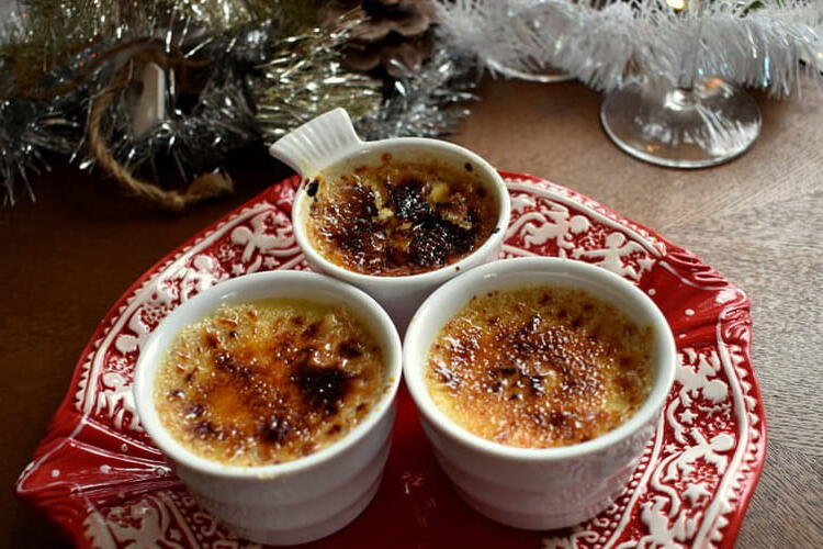 Just before serving, take them out of the fridge, place a teaspoon of brown sugar on each cream, and then caramelize with a torch or under the broiler in the oven (be careful in this case).