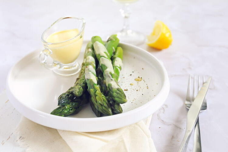 Green asparagus is delicious when fresh, at the beginning of spring, steamed and served with a sauce. Here is a simple and easy recipe for sauce for green asparagus.