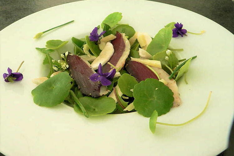 To finish, at the time of serving, garnish the green broth with natural goat cheese logs and a few basil leaves.