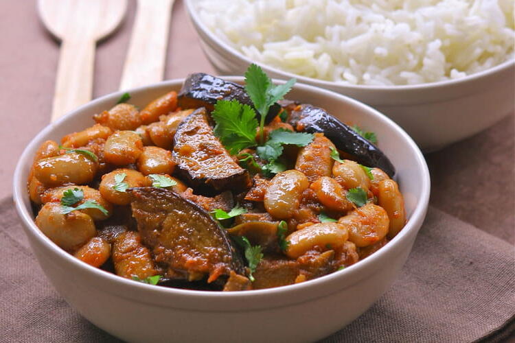 Recipe for Indian-Style Tarbais Beans with Eggplant and Basmati Rice with Lemon by Silvia Santucci