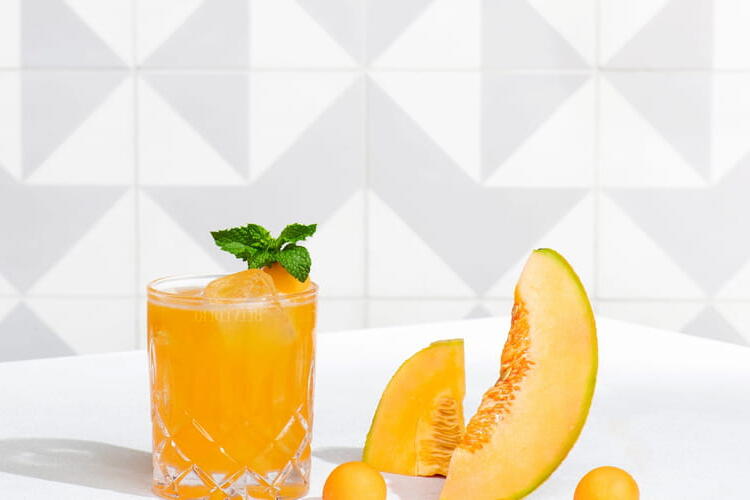 Pour the mixture into a cocktail glass filled with ice cubes.