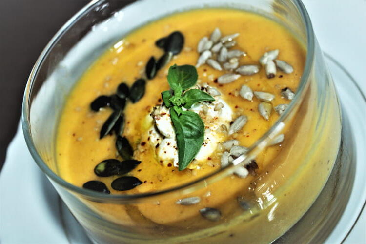 I propose a recipe for an original and very refreshing soup that can be served as either a starter or in small glasses for an appetizer.