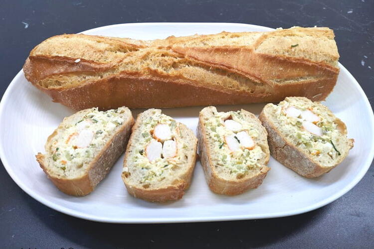 Place the flesh in a blender, add the garlic cloves, salt, sesame tahini, olive oil, and blend until you achieve a smooth texture. Warm the mini bites in a hot oven for 5 minutes. Top them with eggplant caviar. Enjoy warm.