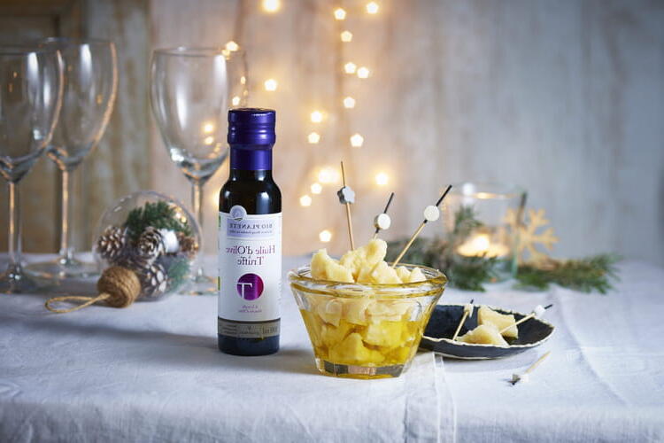 Here is an ideal recipe for appetizers: pieces of parmesan marinated in truffle oil.
