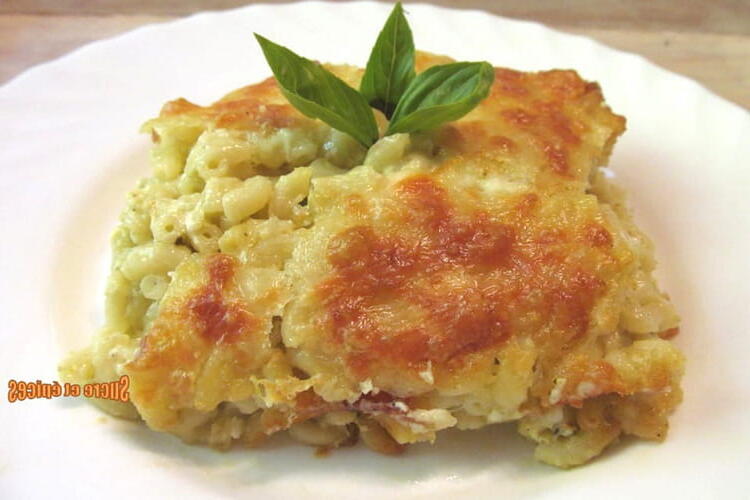 Today I offer you a very comforting dish, a pasta bake with cheese, lightly flavored with pesto. What could be better to please your family, especially the kids?