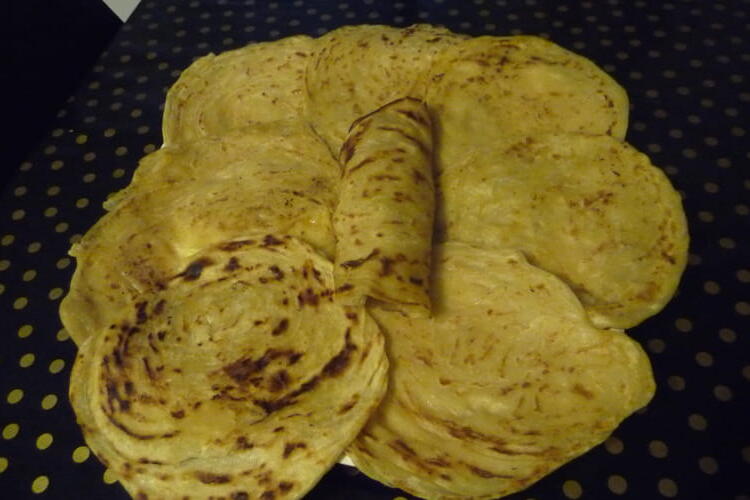 Fold each half crepe in two to form a long rectangle. Place a generous teaspoon of pear compote at the bottom of each crepe rectangle. Fold the bottom of the crepe over the filling, forming a triangle. Then fold the triangle over itself several times until you obtain a samosa.