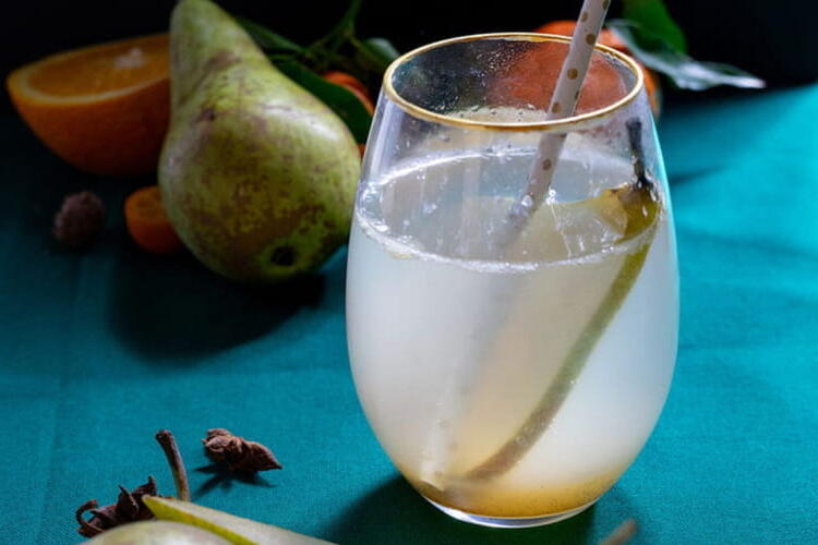 A recipe for pear and spice (Vir)Gin tonic. A non-alcoholic cocktail to enjoy a friendly moment with ingredients you will love. But you can add 4cl of gin per glass.