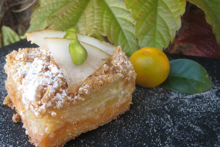 Recipe for Pear-White Chocolate Tart with Peanut Crumble