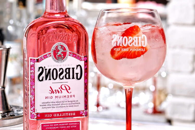 In a glass filled with ice, pour premium pink gin, top with tonic, and add a strawberry cut in half.
