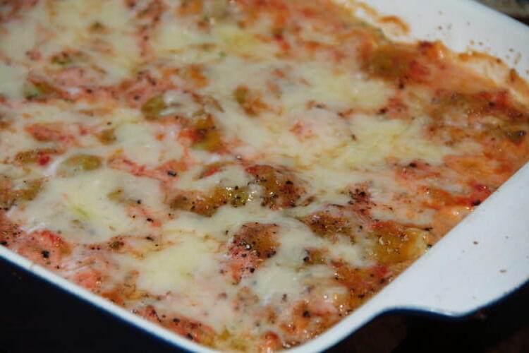 Recipe for Ravioli Gratin with Zucchini and Tomato Sauce