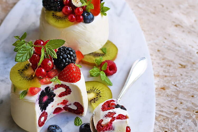 Super fresh and fruity, this recipe for fruit domes with fresh cheese is perfect for dessert.