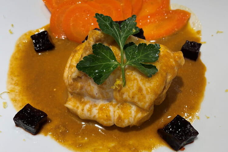A recipe for red mullet filet proposed by Chef Florent Saint-Marc for Marmande tomato. Photo credit: AIFLG.