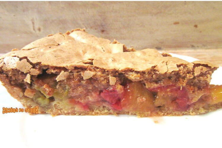 Today I propose a meringue tart with rhubarb, strawberries, and spiced cookies. I enhanced the meringue and the crust with spiced cookies, which add a delicious cinnamon flavor to the tart. If you enjoy meringue fruit tarts, I recommend giving this one a try.