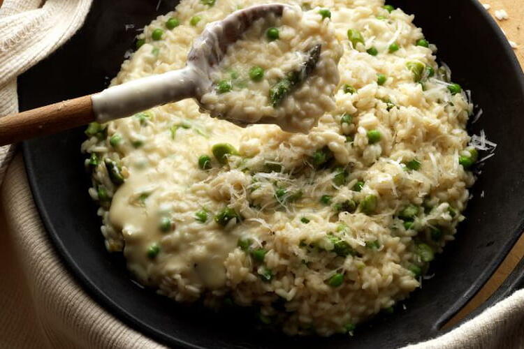 After 18-20 minutes, the rice should be tender but firm in the center. Cover the risotto with a lid and let it rest for 2 minutes.