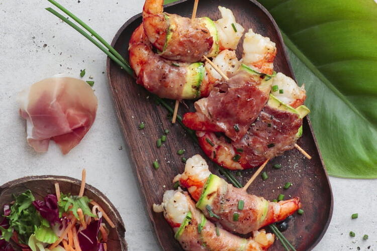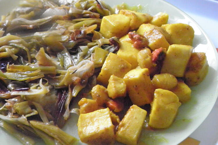 For the sea bream: Peel and cut the onions into cubes. Peel, remove the germ, and crush the garlic cloves. Cut the smoked ham into cubes. Wash the sea bream bones.