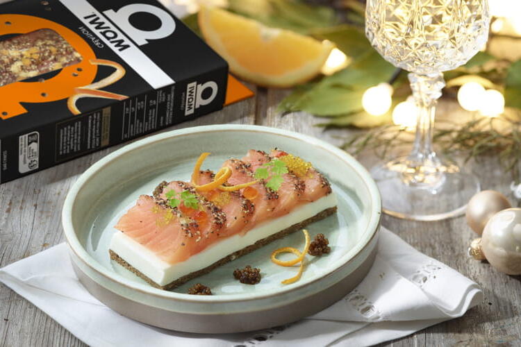 To finish, spread cream cheese on a slice of rye bread, then add 6 slices of smoked salmon. Decorate with salmon roe, fish roe, and orange zest. Keep refrigerated and enjoy!