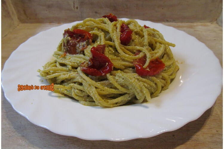 Today I offer you a vegetarian dish made with pasta or an enhanced side. It is an Italian recipe that, through its ingredients, evokes the three colors of the flag: green, white, and red. This dish is easy and quick to make and requires few ingredients for its preparation. In the end, the spaghetti is very creamy and smooth. If you love pesto and ricotta, you will enjoy this.