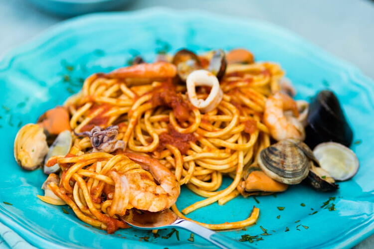 Spaghettoni with maritime flavors. It's ideal for the summer season. A recipe suggestion.