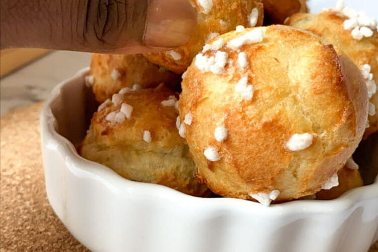 To finish, place in a piping bag fitted with a plain nozzle and pipe your pastry puffs. Add the pearl sugar and bake for 20 to 25 minutes without opening the oven, otherwise your pastry puffs will deflate.