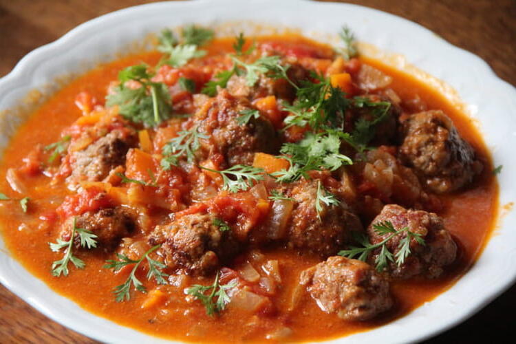 A lovely culinary meeting between the East and the region. A recipe featuring local sausage.