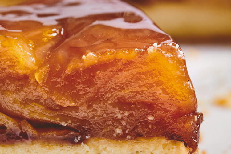 This upside-down tart recipe is taken from the book "Sweet Moments" by chef François Perret. You can vary the fruits and use, in particular, mango, pear, peach, quince, etc., but be careful with the cooking time as it differs from one fruit to another.