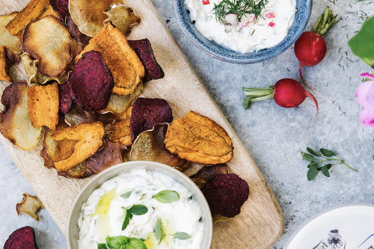Whether it's during brunch, snack time, an appetizer, or for a light bite... any occasion is good to prepare a quick and easy recipe with quality ingredients. This colorful recipe for vegetable chips and fresh cheese dips has been created for flavorful breaks!
