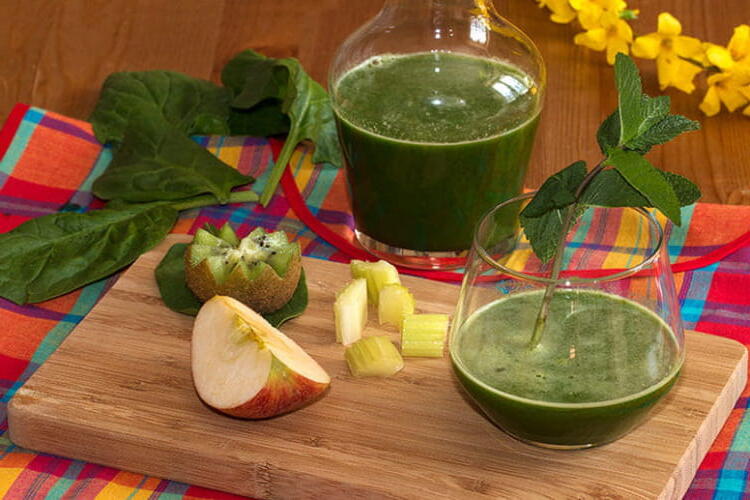 This vitamin juice, made with celery, spinach, mint, and apple, will provide you with all the necessary nutrients to replenish your energy. It is easy to make if you have a juicer or a juice extractor. With this raw juice, you can boost your energy and strengthen your immune system.
