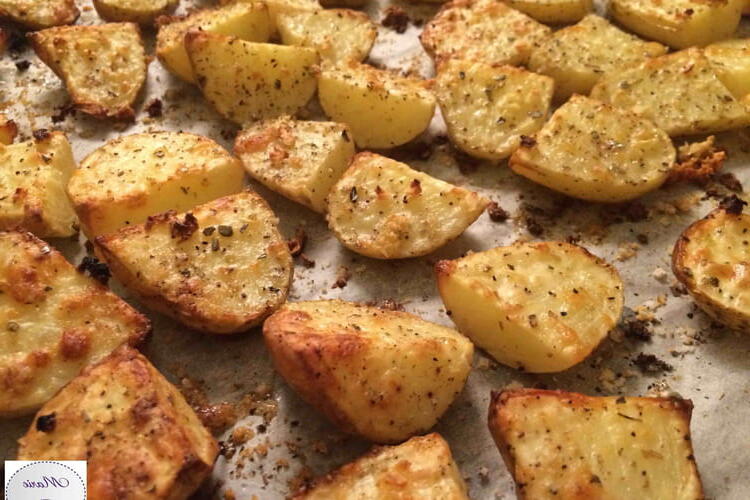 Wash and peel the asparagus; place them on a baking sheet lined with parchment paper with a drizzle of olive oil, salt, and garlic powder.