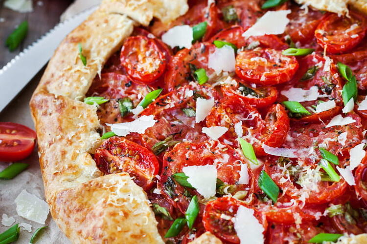 We love this rustic cherry tomato, parmesan, and wild garlic tart recipe created by a French chef.